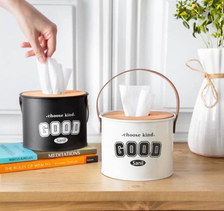 جا دستمال کاغذی فلز و چوب دسته چرم
