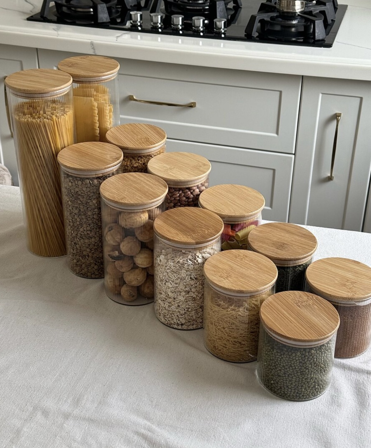 اگر میخواهید کابینت های مرتب و منظمی برای حبوبات یا خوراکی های خود داشته باشید بانکه های پیرکس گزینه فوق العاده ای برای شما میباشد چرا ک این نوع بانکه ها هیچوقت از مد نمیوفتن و کار بسیار شیک و ساده ای است.