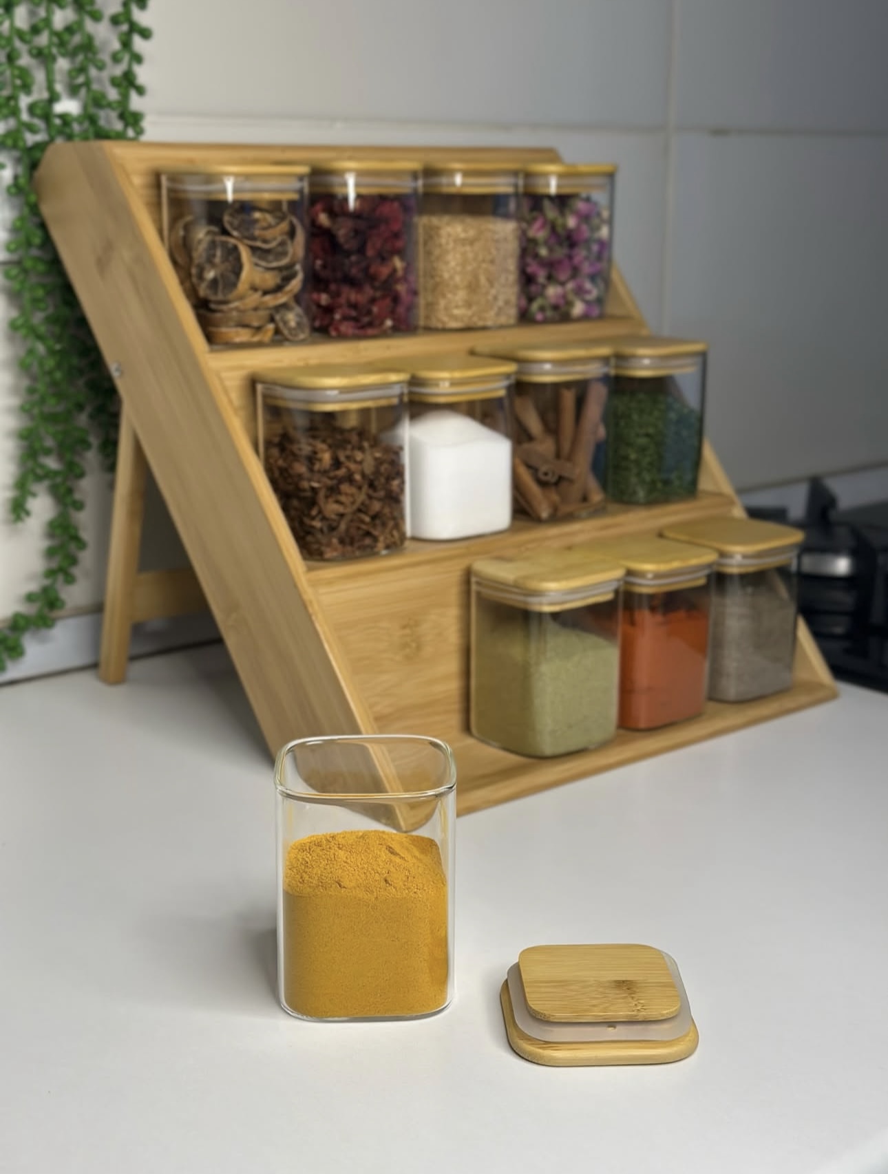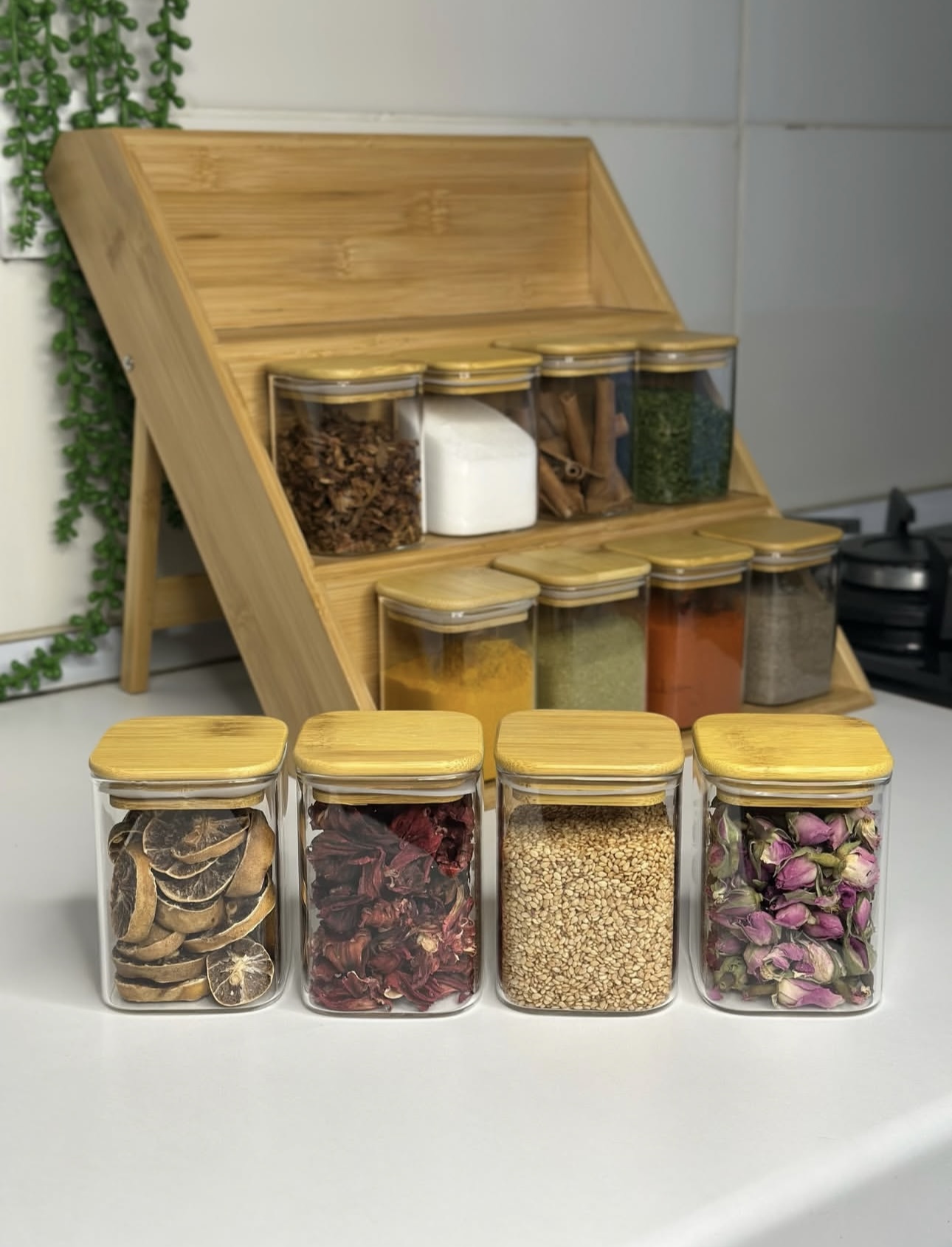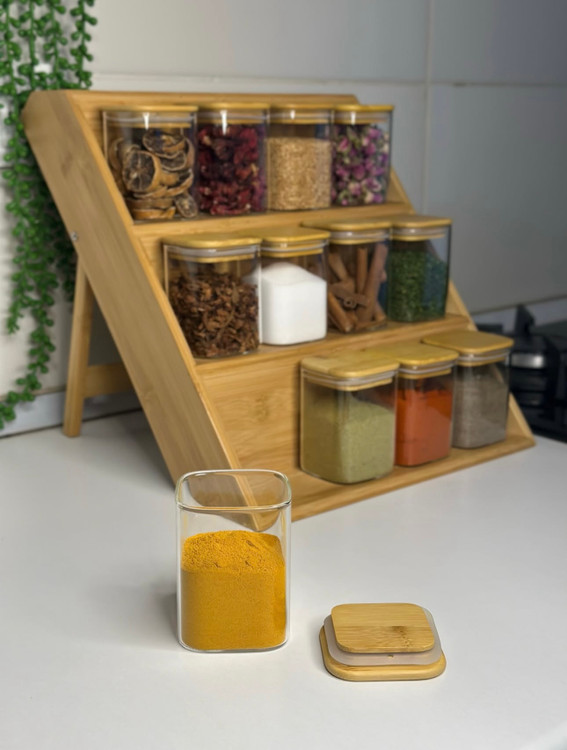 بانكه ادويه پيركس قطعا بهترین انتخاب برای جاادویه هست؛ چرا که به راحتی قابل شستشو است و شیک ترین مدل برای چیدمان بغل گازی است. جنس کار پیرکس ضخیم و درب ان بامبو قابل شستشو هست.