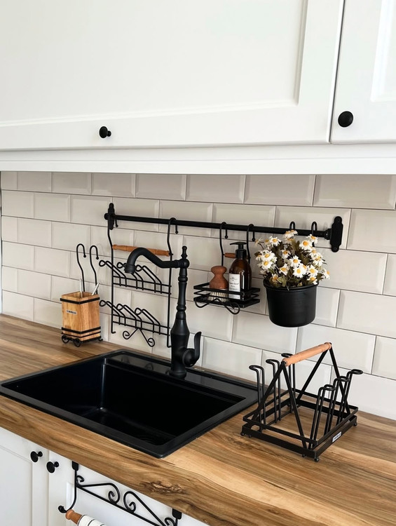 این میلهی کاربردی با جنس فلز مقاوم و طراحی ساده و مینیمال ساخته شده و همراه ۵ عدد آویز میاد. بهترین ابزار برای نظمدهی آشپزخانهست و میتونی لیوان، دستمال آشپزخانه، ابزارهای آشپزی، ملاقه، کفگیر یا حتی سبدهای کوچک رو ازش آویزون کنی.