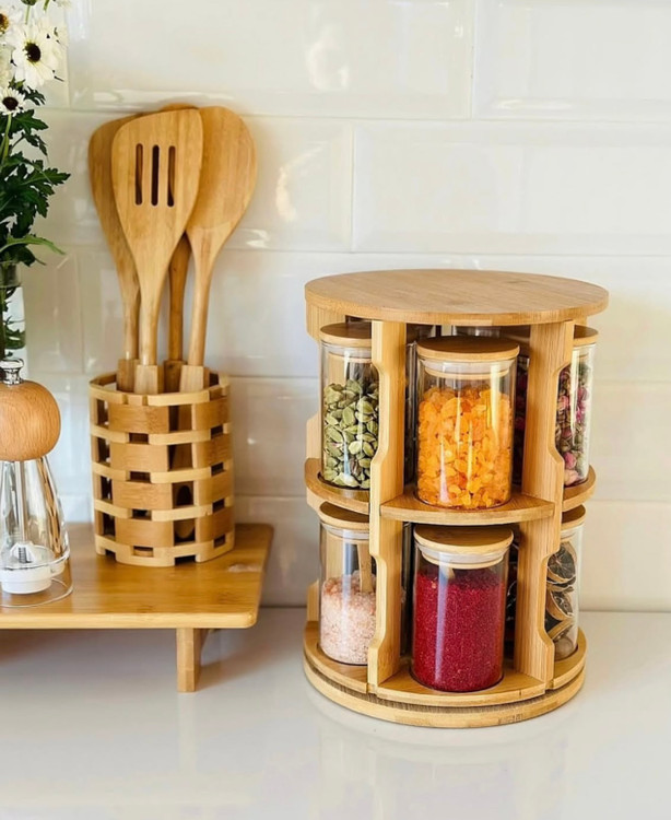 ظاهر گرمِ بامبو، آشپزخونه رو زیباتر میکنه و بهترین گزینه برای نظمدهی ادویههاست.