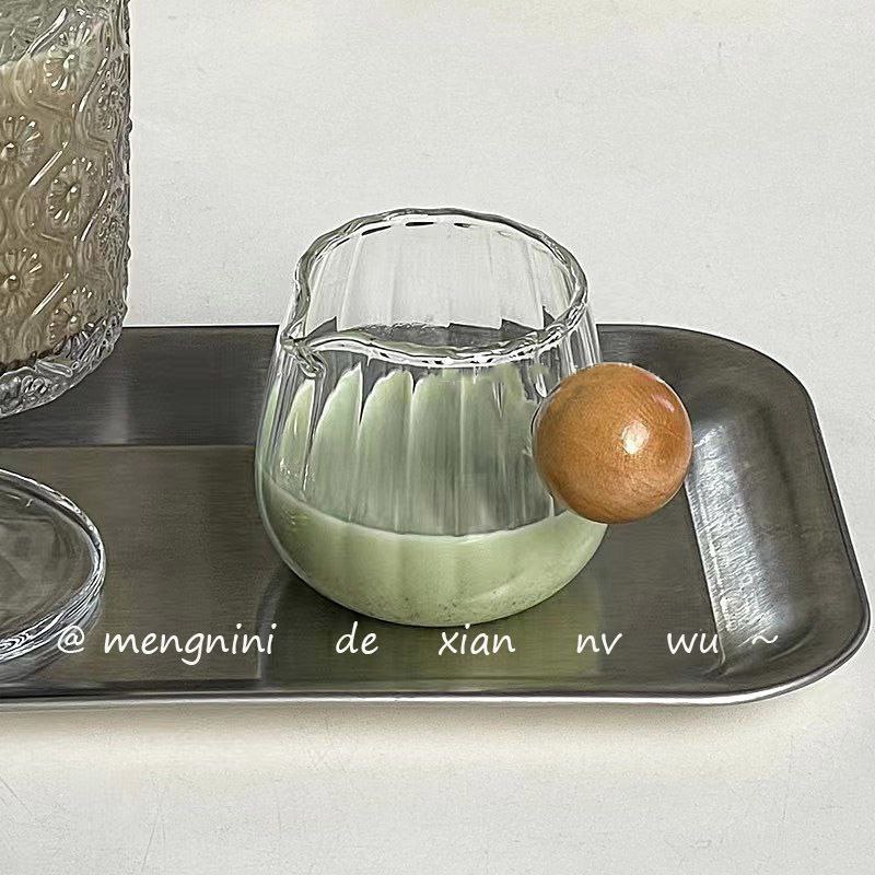 دستهی تپل طراحی شده تا موقع سرو دست راحتتر روی ظرف قرار بگیره و کنترل بیشتری بده. درب چوبی توپی هم علاوهبر زیبایی طبیعی، از ورود گردوغبار جلوگیری میکنه و ظاهر ظرف رو کاملاً پینترستی و لوکس نشون میده.
