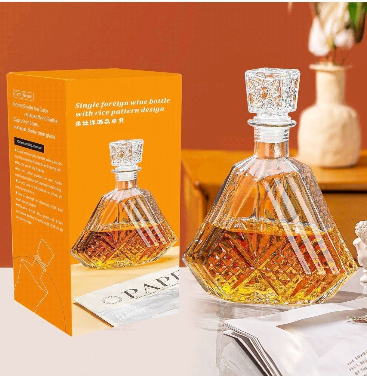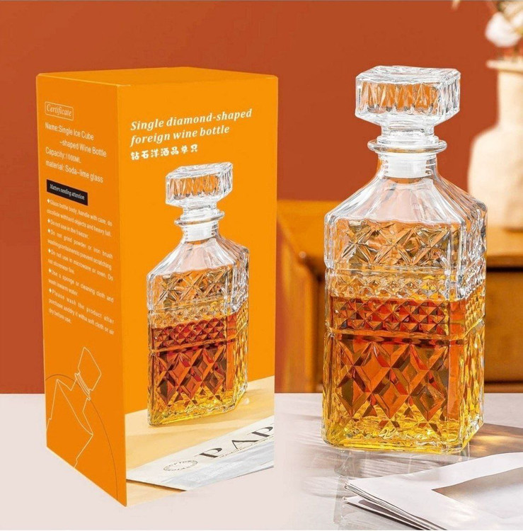 بطری بلور الماسی یک ظرف شیک و دکوری برای سرو و نگهداری آب، شربت، نوشیدنیها و حتی دتاکسواتره. طراحی الماسی روی شیشه باعث شده نور رو زیبا منعکس کنه و ظاهر لوکس و کریستالی به میز پذیرایی بده.