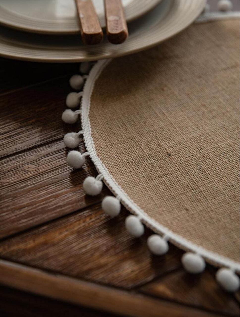 زیر بشقابی گرد ساده منگولهدار، ترکیبی از سادگی و جذابیت داره و جلوهای خاص به میز ناهارخوری یا پذیرایی میبخشه. طراحی گرد با منگولههای تزئینی باعث میشه میز شما مرتب و چشمنواز دیده بشه و به سرو غذا حس طبیعی و صمیمی بده.