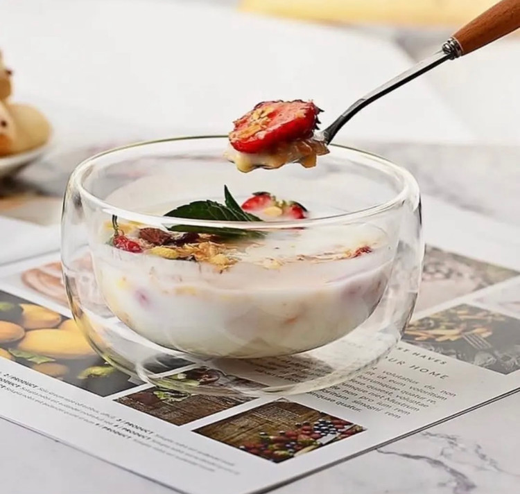 کاسه پیرکس دوجداره با طراحی مدرن و بدنه شفاف، انتخابی عالی برای سرو انواع دسر، بستنی، سوپ، سالاد و تنقلات است. ساختار دوجداره باعث میشود دمای محتویات برای مدت بیشتری حفظ شود و در عین حال بدنه بیرونی کمتر گرم یا سرد شود، بنابراین استفاده از آن راحتتر است.
