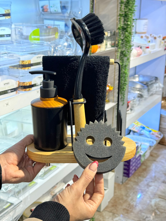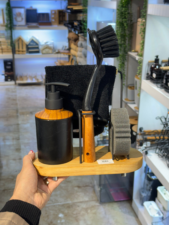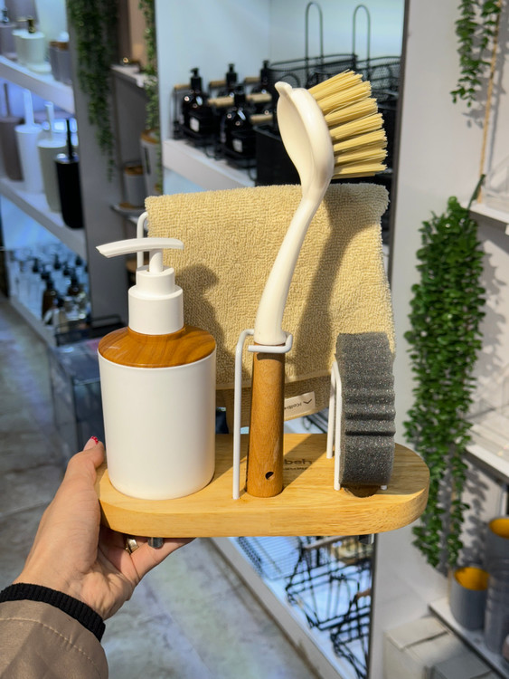 طراحی چوبی با فرم کلبهای، جلوهای گرم و دکوراتیو به آشپزخانه میدهد و در عین حال استفادهی روزمره را سادهتر میکند. با این استند، دیگر نیازی به پخش بودن لوازم شستوشو روی سینک نیست و همه چیز جای مشخص خودش را دارد.