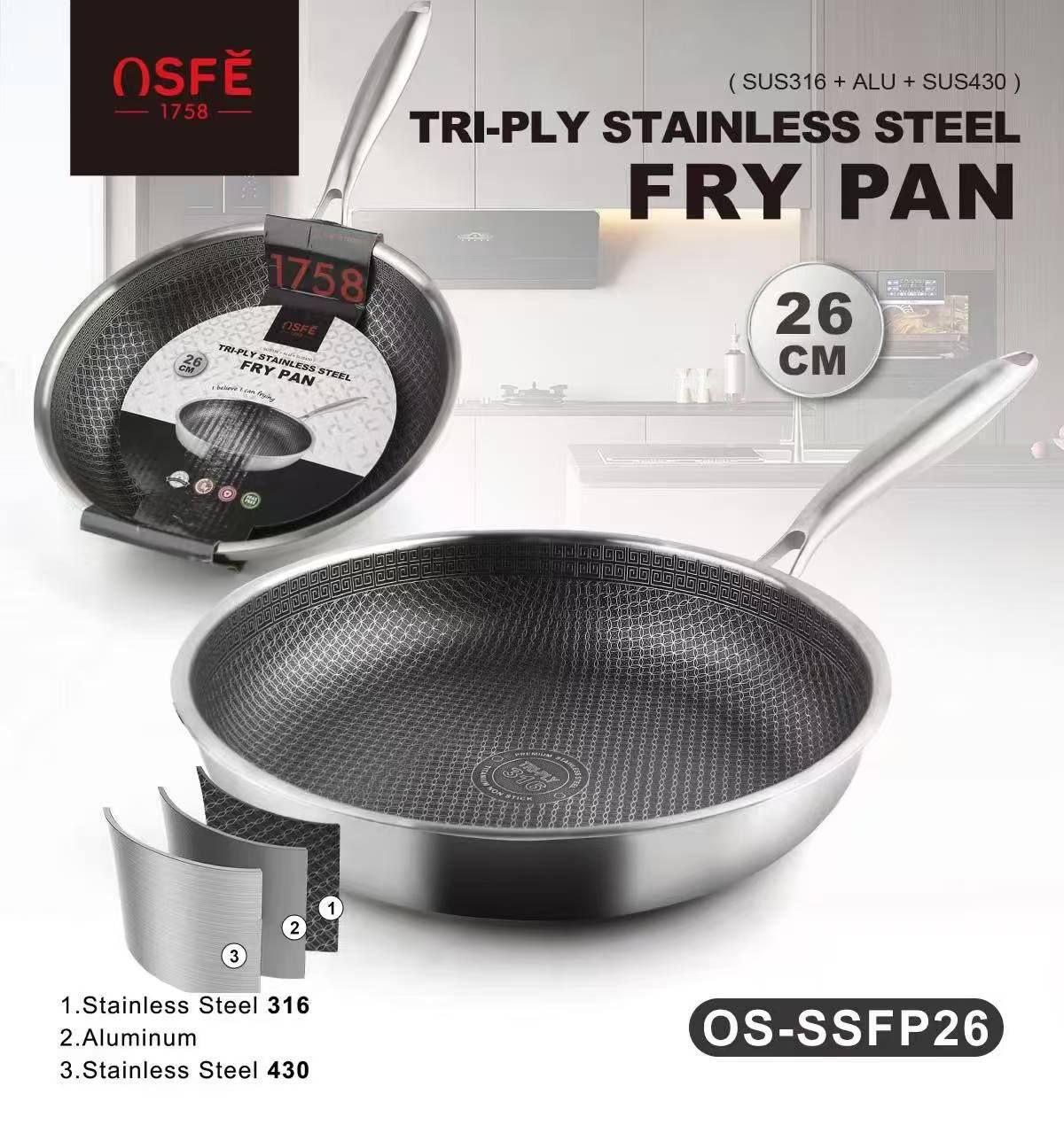 این تابه یکی از بهترین و ضخیم ترین مدل های موجود در بازار است. استیل سه لایه با روکش لیزری مشکل چسبندگی در تابه استیل را کاملا رفع کرده است؛ از نظر سلامت غذایی،استیل بهترین کیفیت برای پخت و پز هست و هیچگونه مواد اضافی به غذا پس نمیدهد. همچنین لازم ب ذکر است برند این تابه یکی از معتبرترین و باکیفیت ترین ها در کل دنیاست.