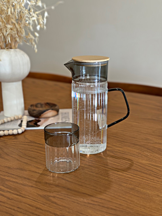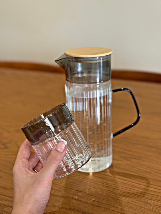 پارچ‌ و لیوان پیرکس درب بامبو لاین دودی وارداتی