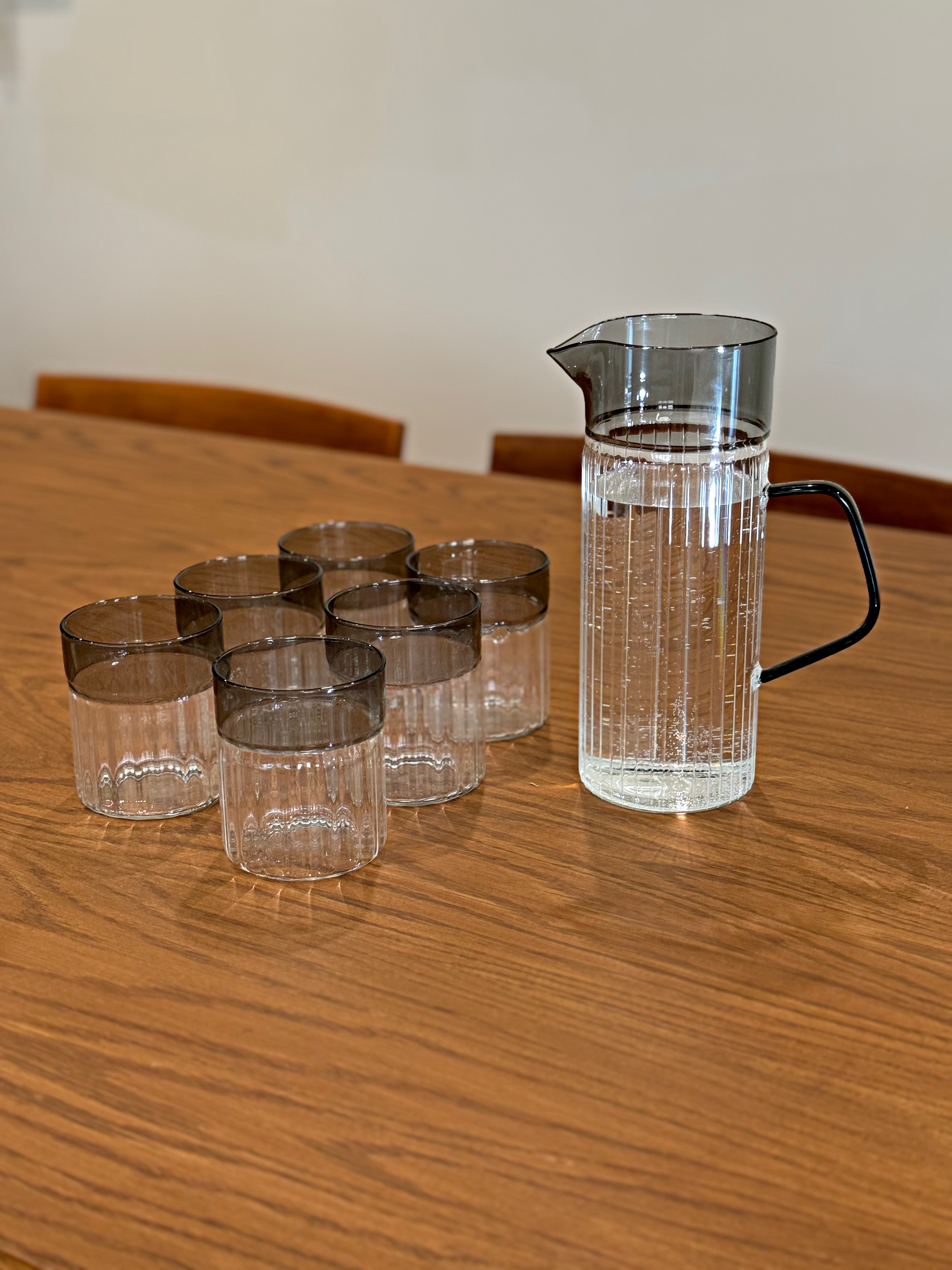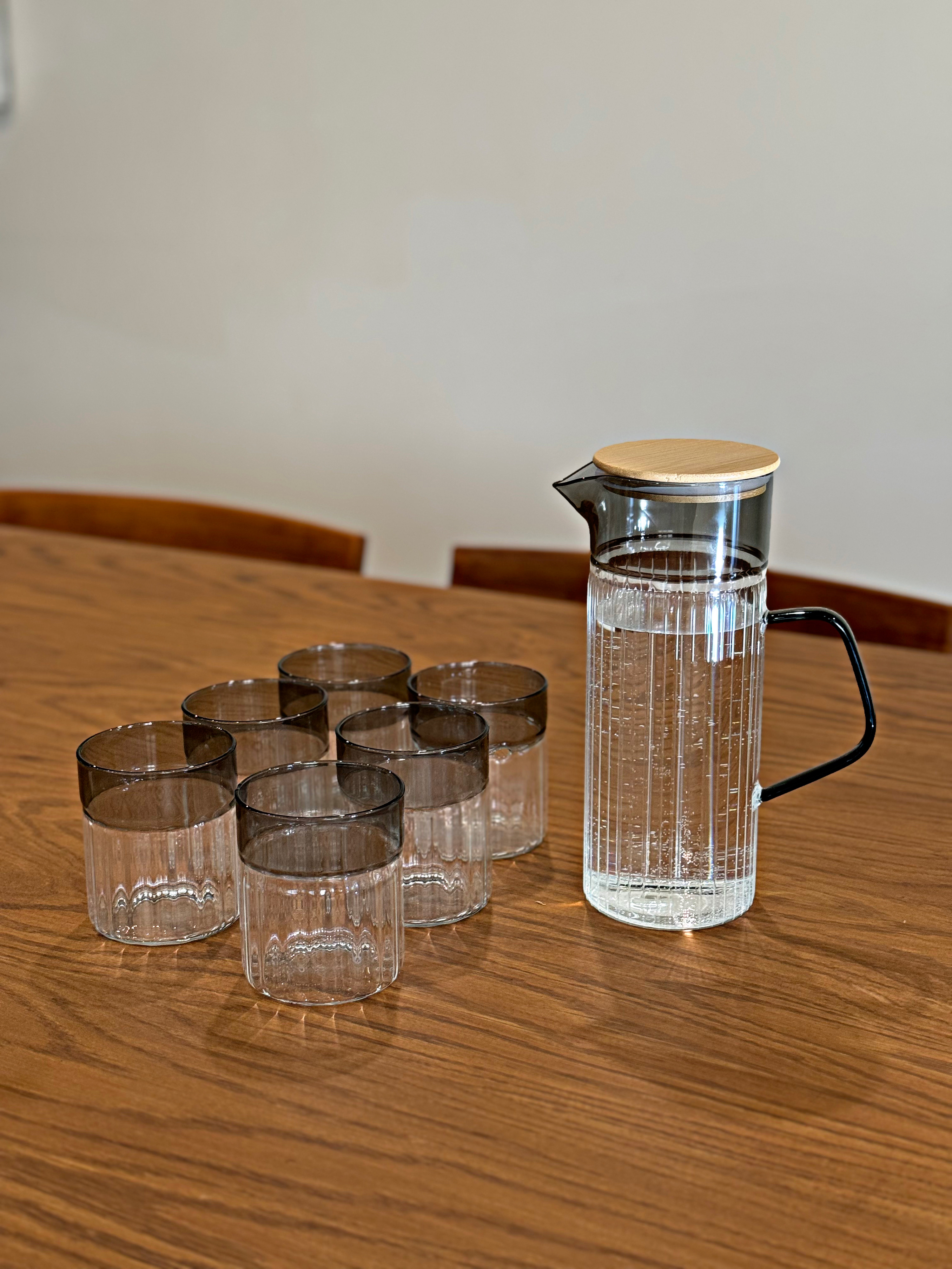 پارچ‌ و لیوان پیرکس درب بامبو لاین دودی وارداتی