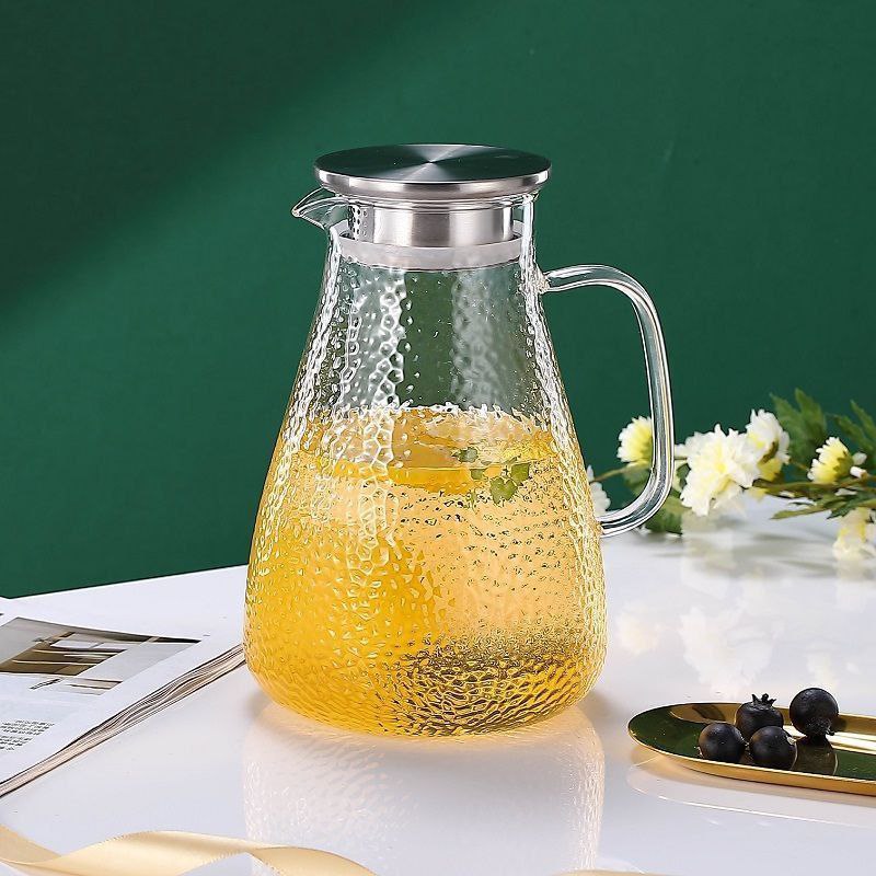 پارچ شیاردار شیشه ای لیمون در استیل ۱/۵لیتر